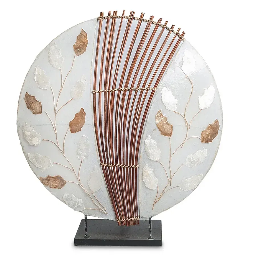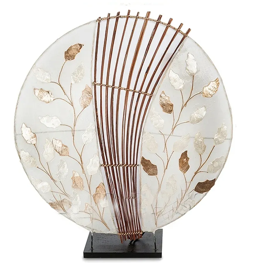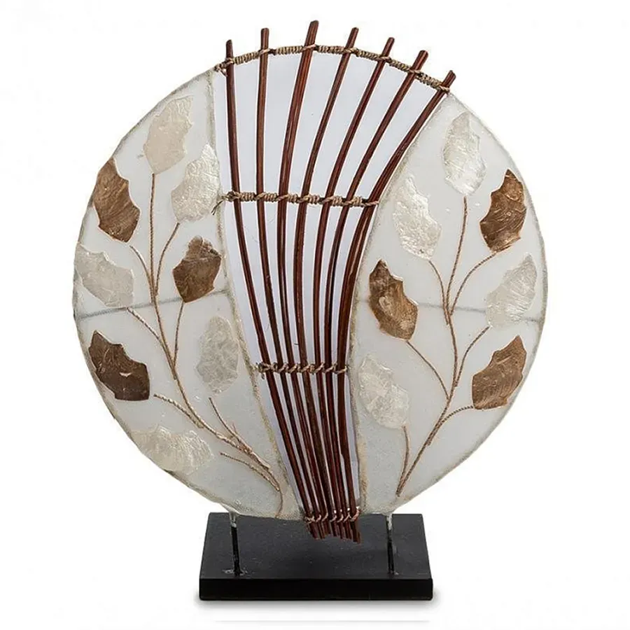 Настольная лампа из перламутра и дерева на подставке Indonesian Round Shell