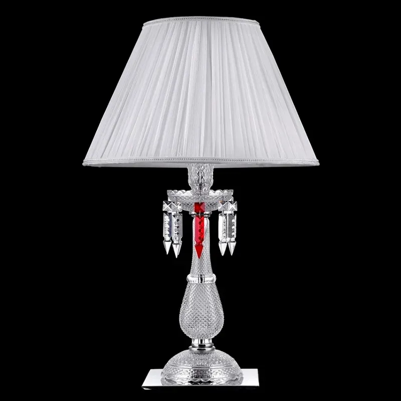 Настольная лампа с белым текстильным абажуром и хрустальными подвесками красного и прозрачного цвета Lustre Reverie
