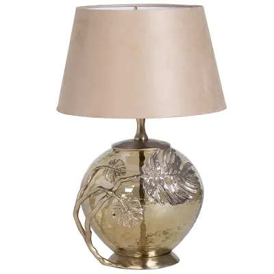 Настольная лампа бежевая с круглым стеклянным основанием Silver Monstera Leaf
