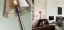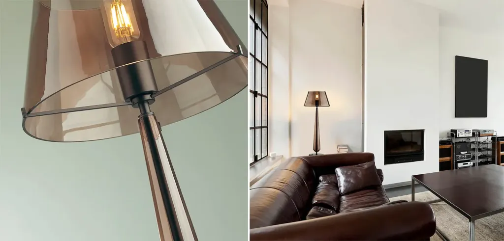 Торшер с черным абажуром и оригинальной ножкой в форме автомата Flos