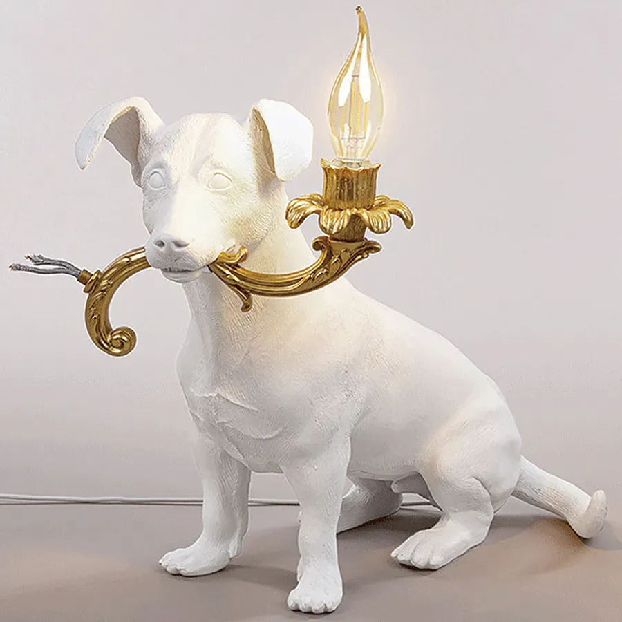 Настольная лампа в виде собаки с золотым светильником в зубах Lumi Dog