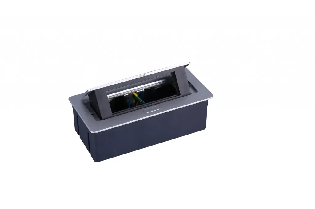Настольный встраиваемый выдвижной розеточный блок 6 мод. (3 мод. 45х45), алюминий