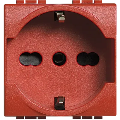 L4140/16R Розетка 2П + заземление 10A/16A, с центральными и боковыми заземляющими контактами Shuko c защитными шторками Bticino