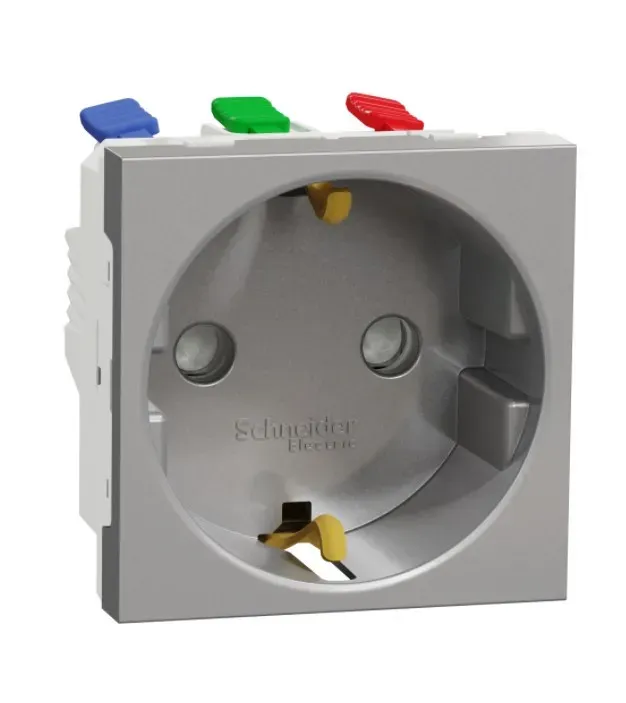 NU303730 Розетка с заземл., со шторк., винт. зажим, 16А, 250В, 2 мод Алюминий Schneider Electric