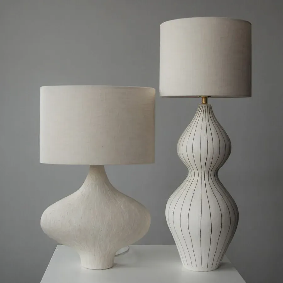Настольная лампа с абажуром и каркасом из белых деревянных бусин White Wooden Beads Table Lampshade