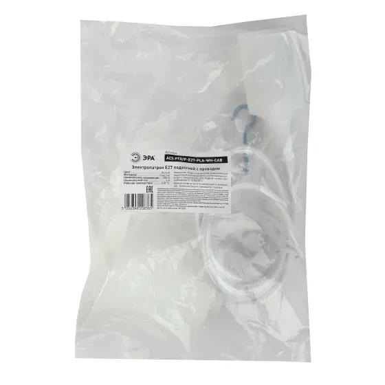 Патрон ЭРА Е27 с подвесом пластиковый PTR/P-E27-PLA-WH-CAB Б0048038