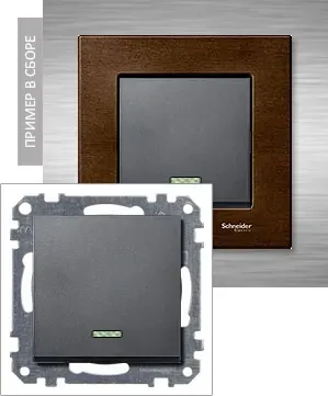 Переключатель 1-кл с подсветкой Merten Серия M Антрацит MTN3106-0000+MTN431014