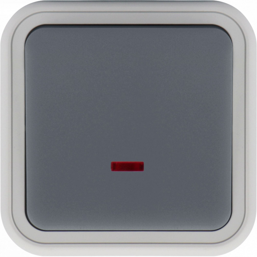 Выключатель звонкового типа 1-клавишный накладной, с подсветкой, цвет серый, IP55, серия W55