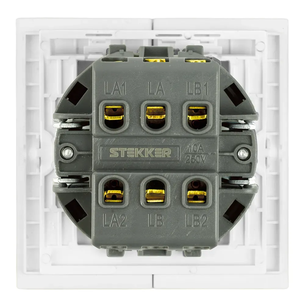 Переключатель 2-клавишный (механизм) Stekker Мия 250В 10А RSW10-3107-01 белая магнолия 50434