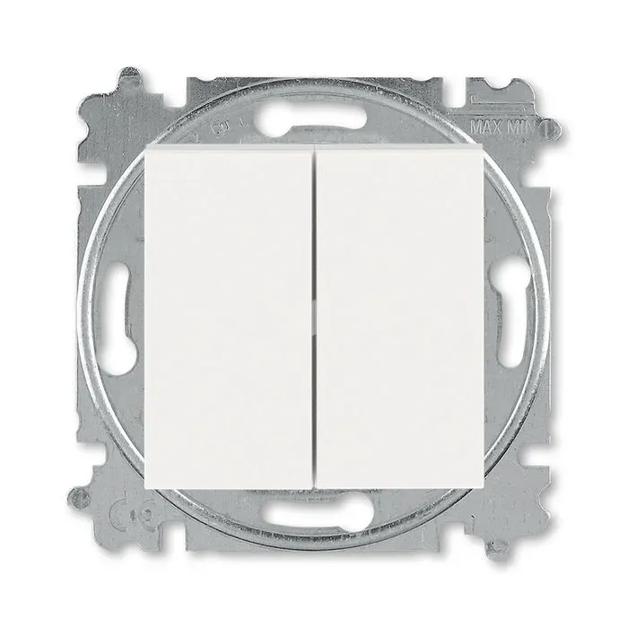 Выключатель двухклавишный ABB Levit, 10 А, белый-ледяной 2CHH590545A6001