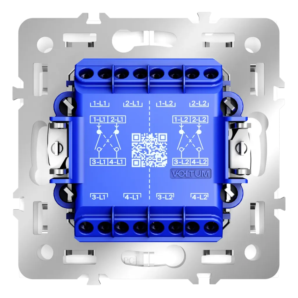 Перекрестный переключатель встраиваемый Voltum S70 двухклавишный 10А, (белый глянцевый) VLS020501
