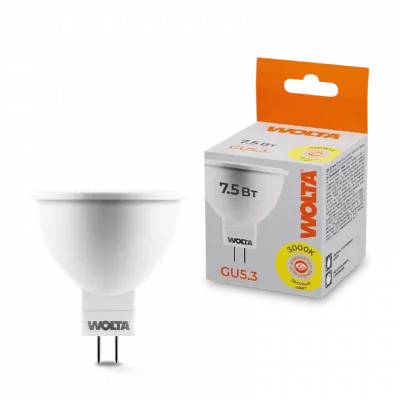 Светодиодная лампа WOLTA 7.5Вт 3000K GU5.3 матовая 25YMR16-220-7.5GU5.3