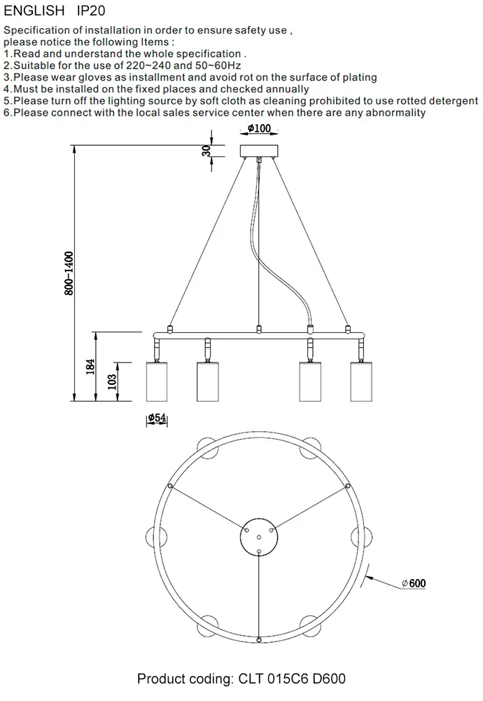 Подвесная люстра Crystal Lux CLT 015C6 D600 BL