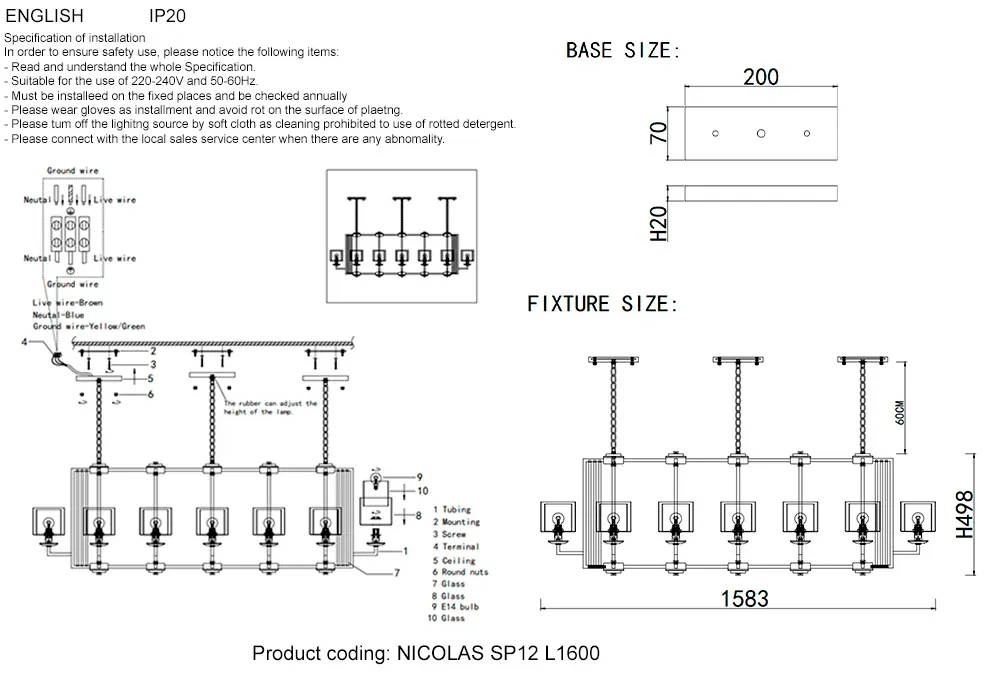 Подвесная люстра Crystal Lux Nicolas NICOLAS SP8 L1000 NICKEL/WHITE