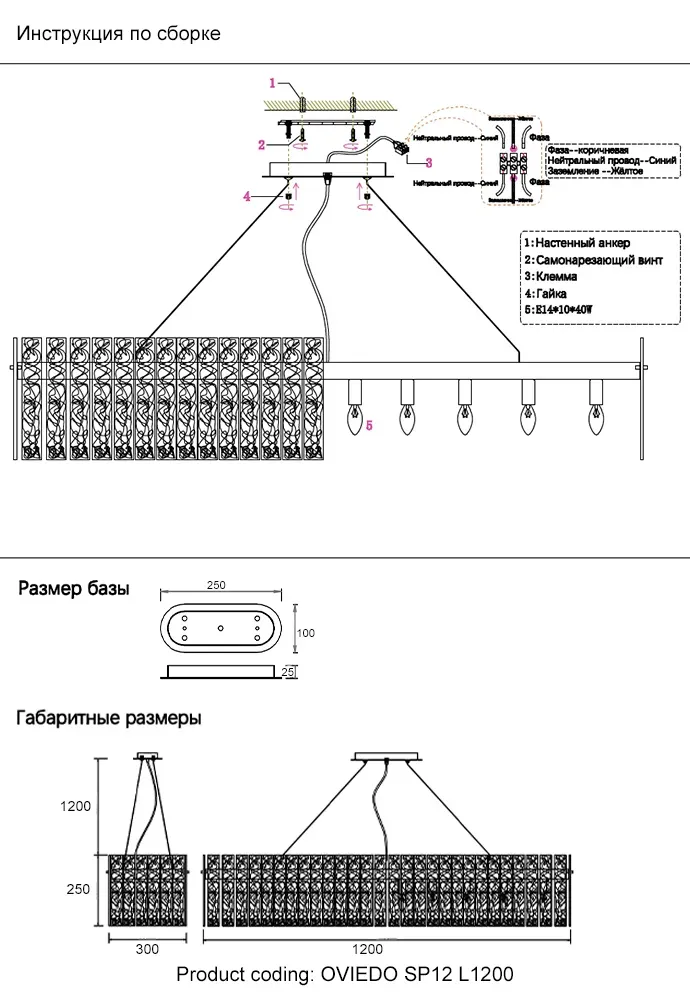 Подвесная люстра Crystal Lux OVIEDO SP12 L1200