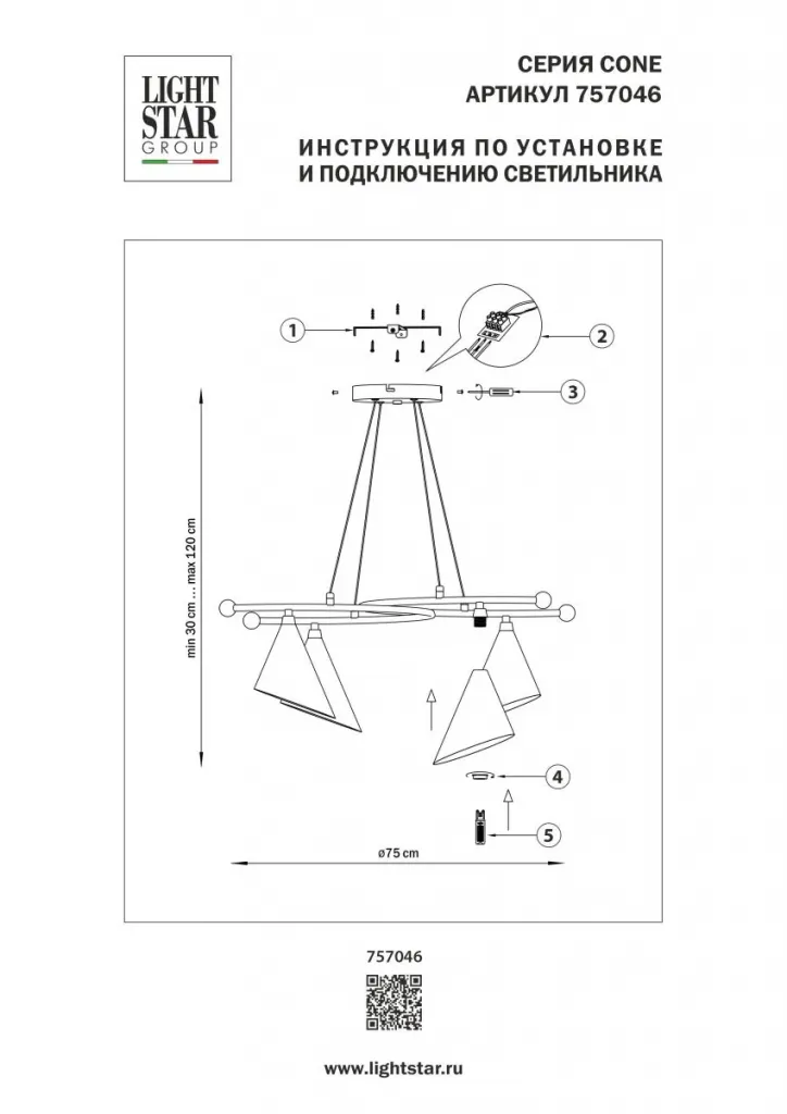 Подвесная люстра Lightstar Cone GW 757046