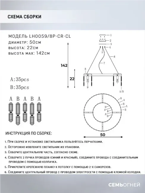 Подвесная люстра Lumien Hall Dzhudita LH0064/8P-CR-CL