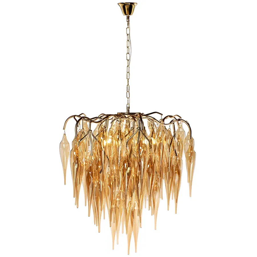 Люстра со стеклянными подвесками янтарного цвета Ambre Glass Chandelier 70
