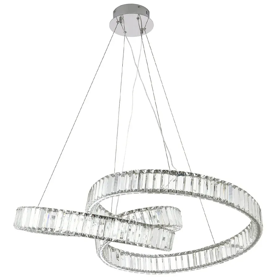 Подвесная люстра в виде изогнутых колец с хрустальным декором Ring Horizontal Oculus Chrome Light Chandelier