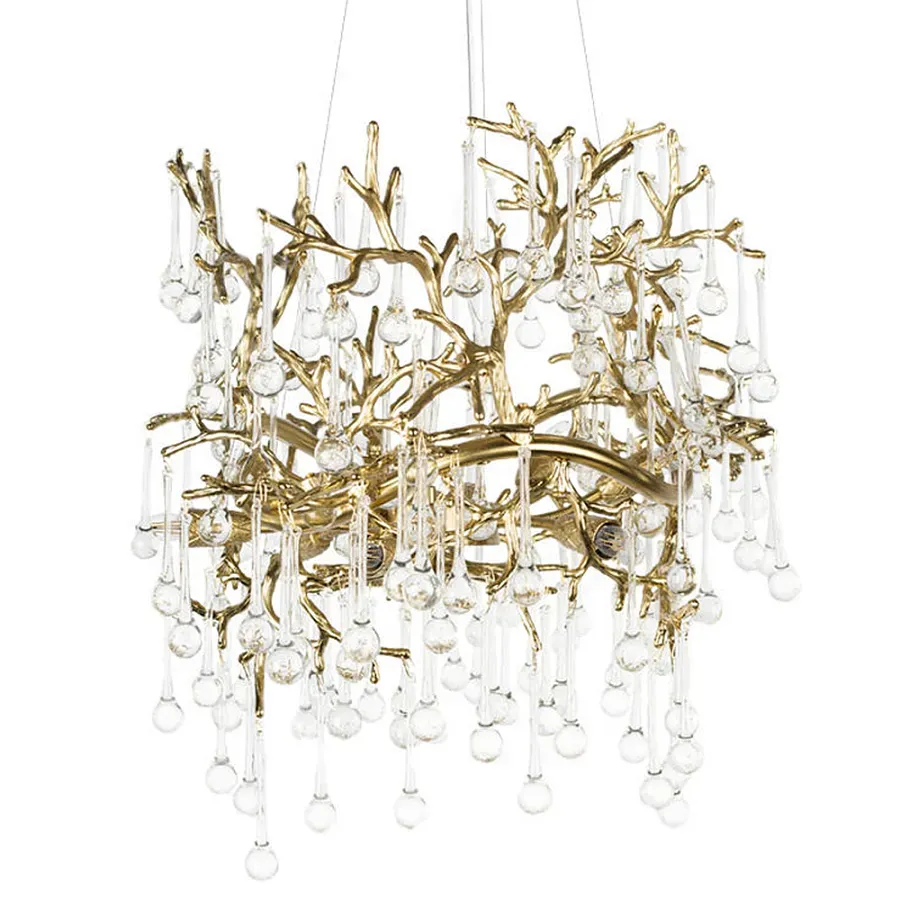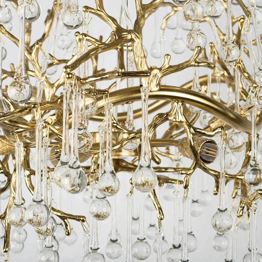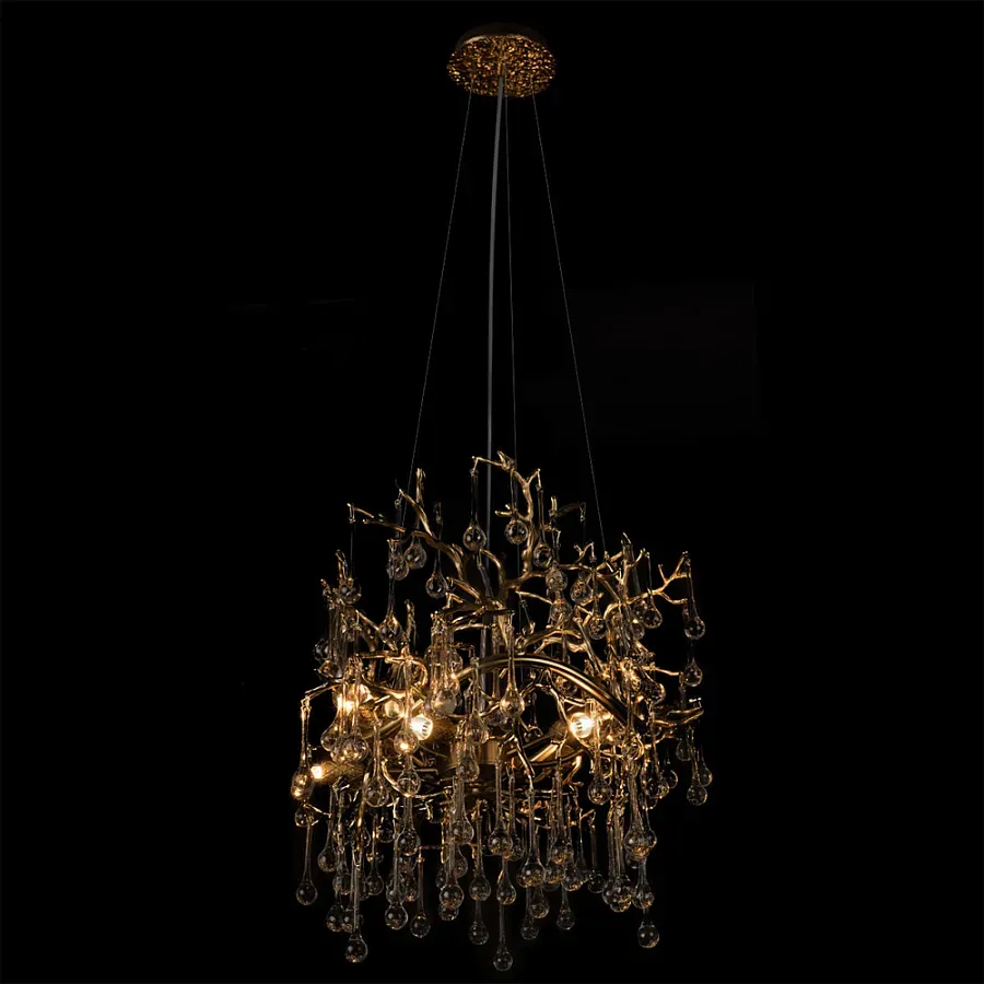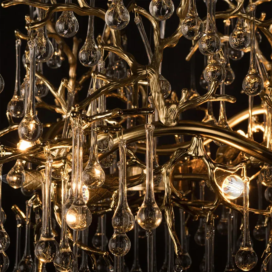 Потолочная люстра в виде ветвей деревьев золотого цвета с прозрачными подвесками-каплями Droplet Chandelier