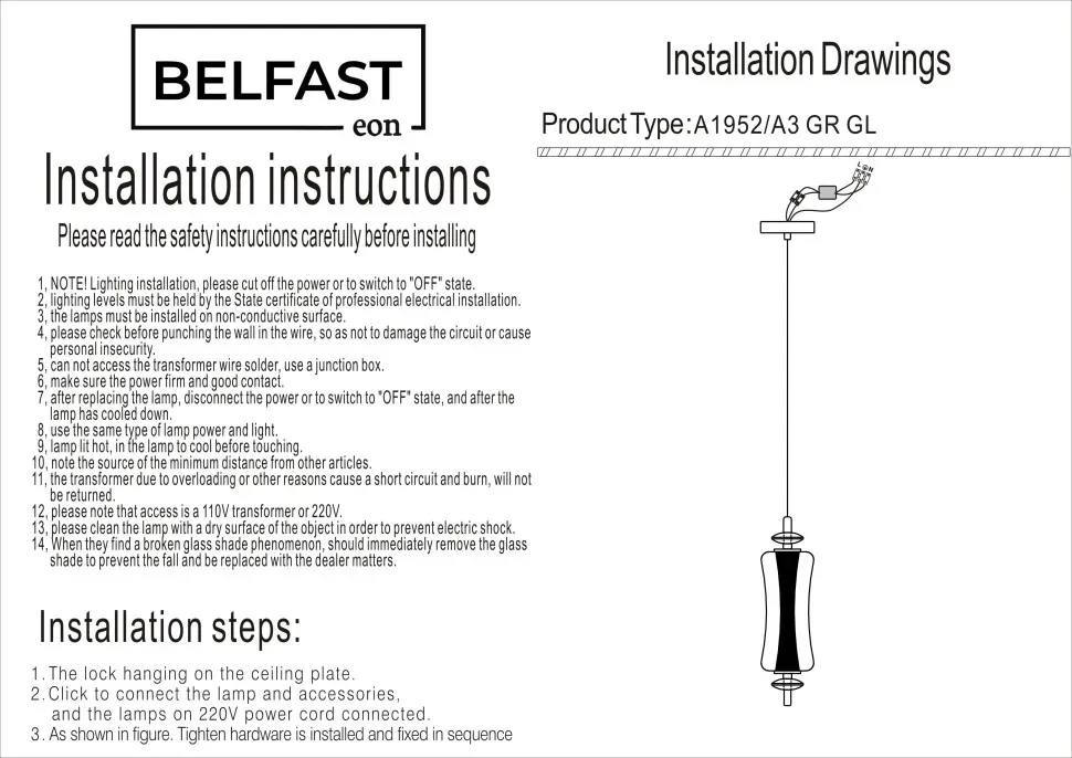 Подвесной светильник Belfast Herbison A1953-A-A3 CA GL