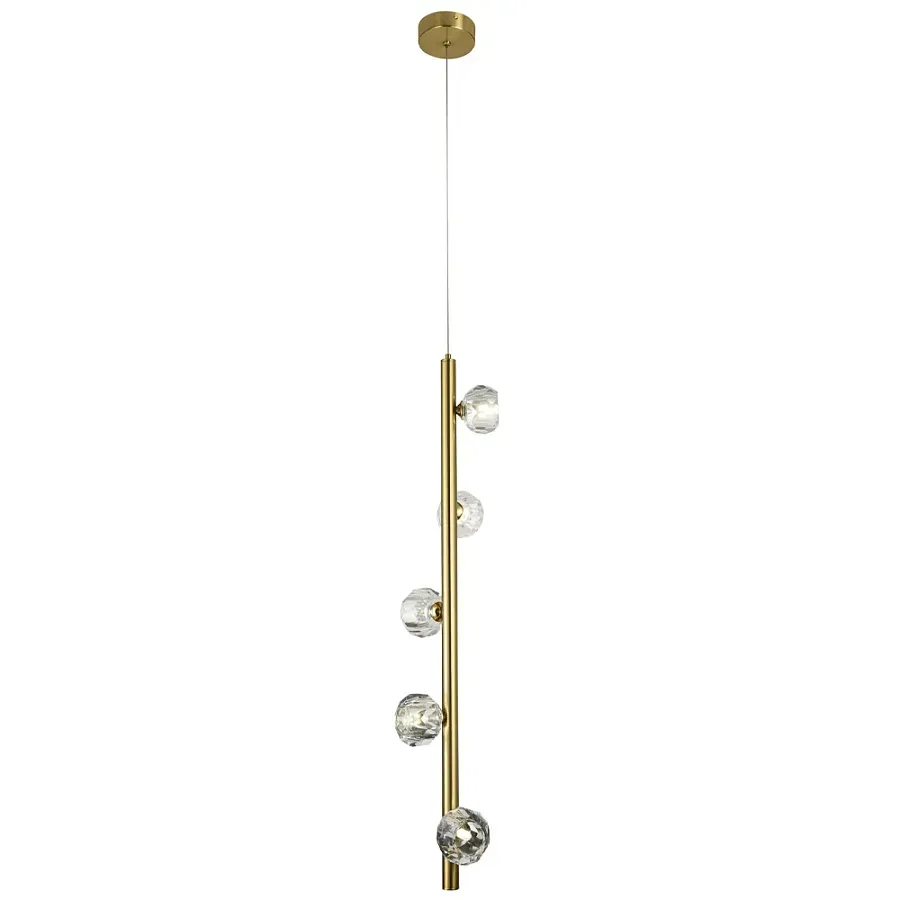 Подвесной светильник c 5-ю хрустальными плафонами Metal Tube Crystal Brass Hanging Lamp