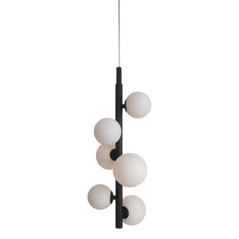 Подвесной светильник черный с 6-ю белыми стеклянными шарообразными плафонами Bubble Chandelier