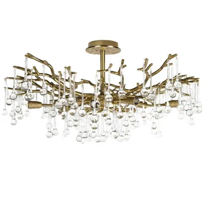 Потолочная люстра в виде ветвей деревьев золотого цвета с прозрачными подвесками-каплями Droplet Chandelier