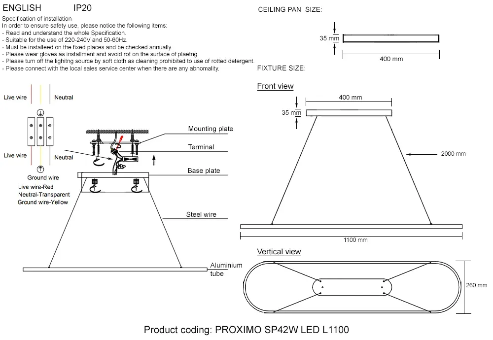 Подвесной светильник Crystal Lux PROXIMO SP42W LED L1100 BLACK