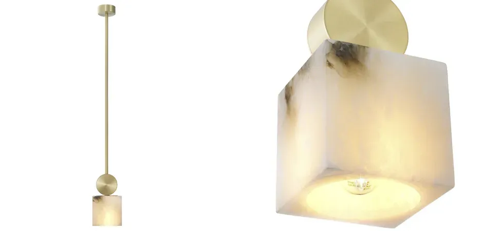 Подвесной светильник с цилиндрическим мраморным плафоном Marble square