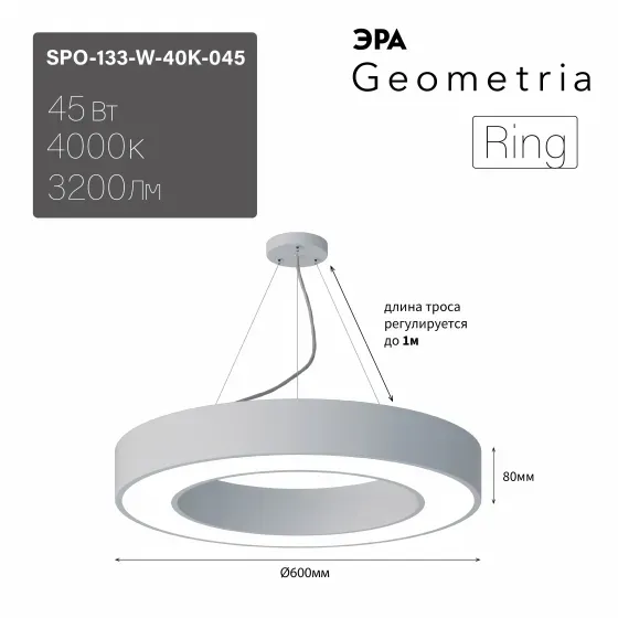 Подвесной светодиодный cветильник Geometria ЭРА Ring SPO-131-W-40K-045 Б0050558