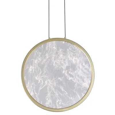 Светодиодный подвесной светильник круглой формы с металлической рамой золотого цвета Marble Glow 47