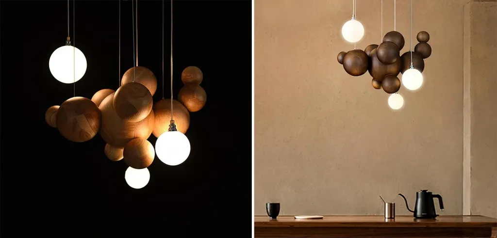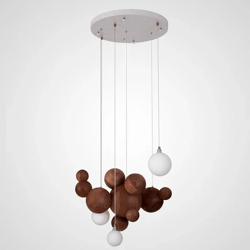 Подвесной светильник с шарообразными плафонами из светлого и темного дерева Magalie Wooden Hanging Lamp