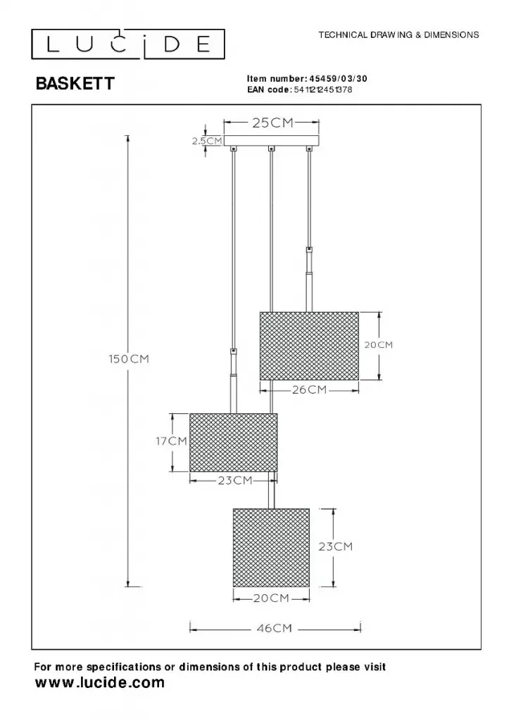 Подвесной светильник Lucide Baskett 45459/03/30
