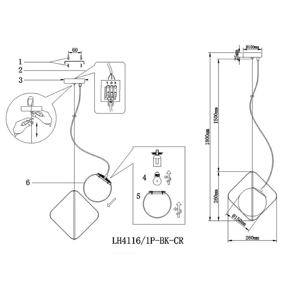 Подвесной светильник Lumien Hall Ortezi LH4116/1P-BK-CR