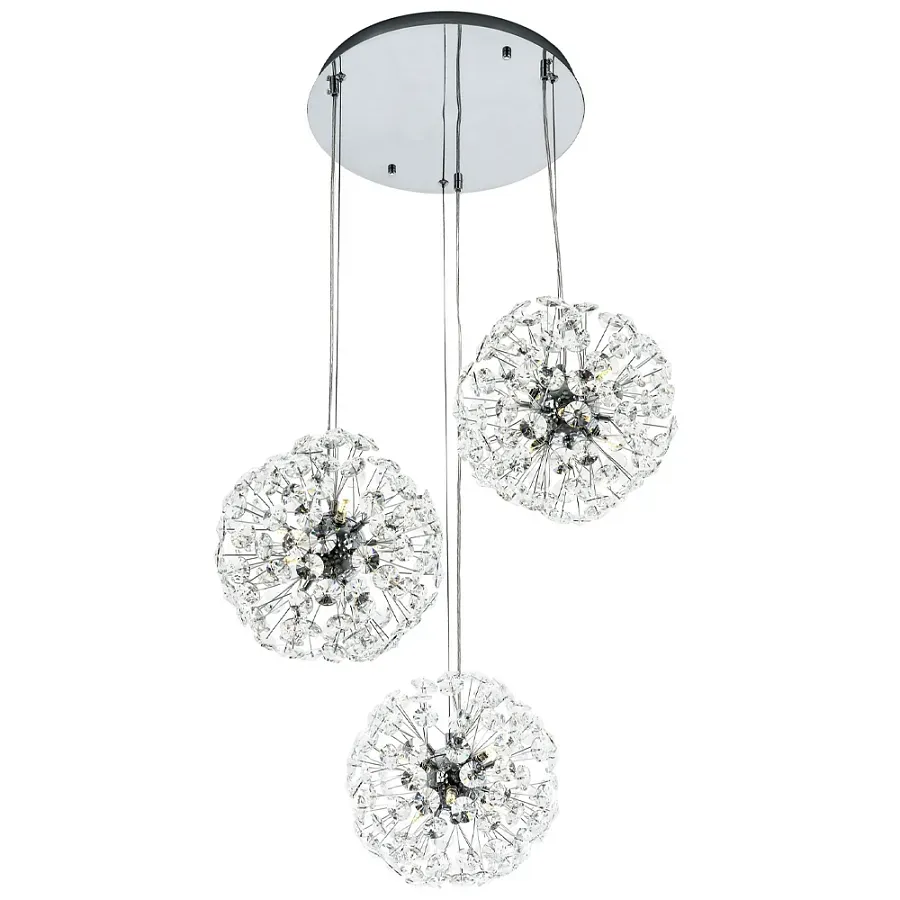 Подвесной светильник с 3-мя плафонами Crystal Dandelions Chrome Hanging Lamp