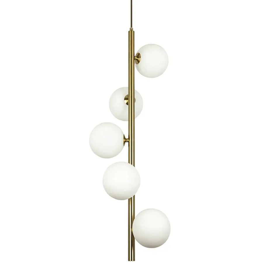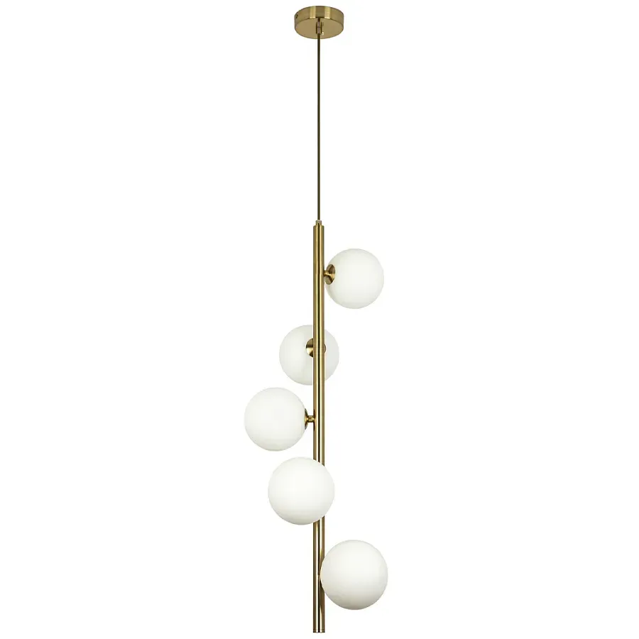 Подвесной светильник с 5-ю сферическими плафонами из матового стекла Pearls Suspension Brass Tube Hanging Lamp