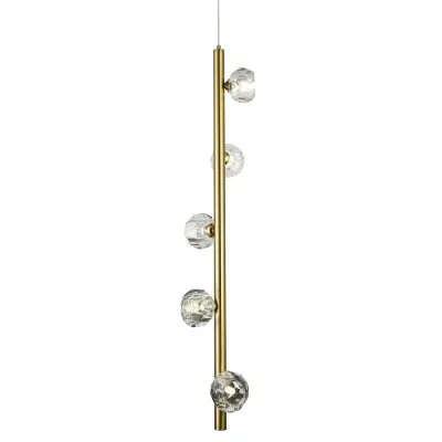 Подвесной светильник c 5-ю хрустальными плафонами Metal Tube Crystal Brass Hanging Lamp