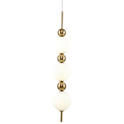 Подвесной светильник с 3-мя сферическими плафонами из матового стекла Pearls Suspension Brass Tube Hanging Lamp