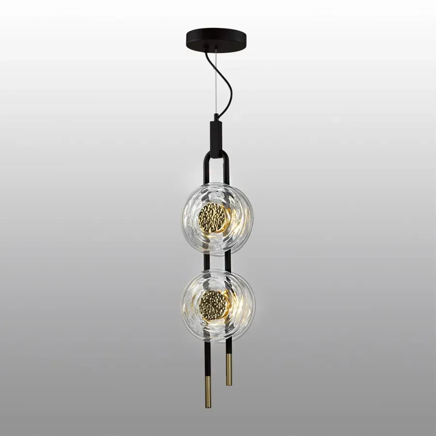 Подвесной светильник с черным основанием и золотистым декором Bruno Duo