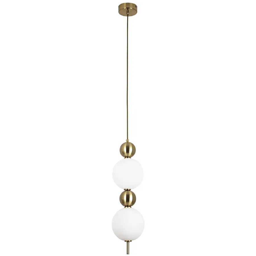 Подвесной светильник с 5-ю сферическими плафонами из матового стекла Pearls Suspension Brass Tube Hanging Lamp