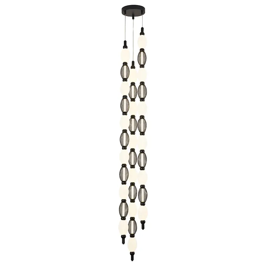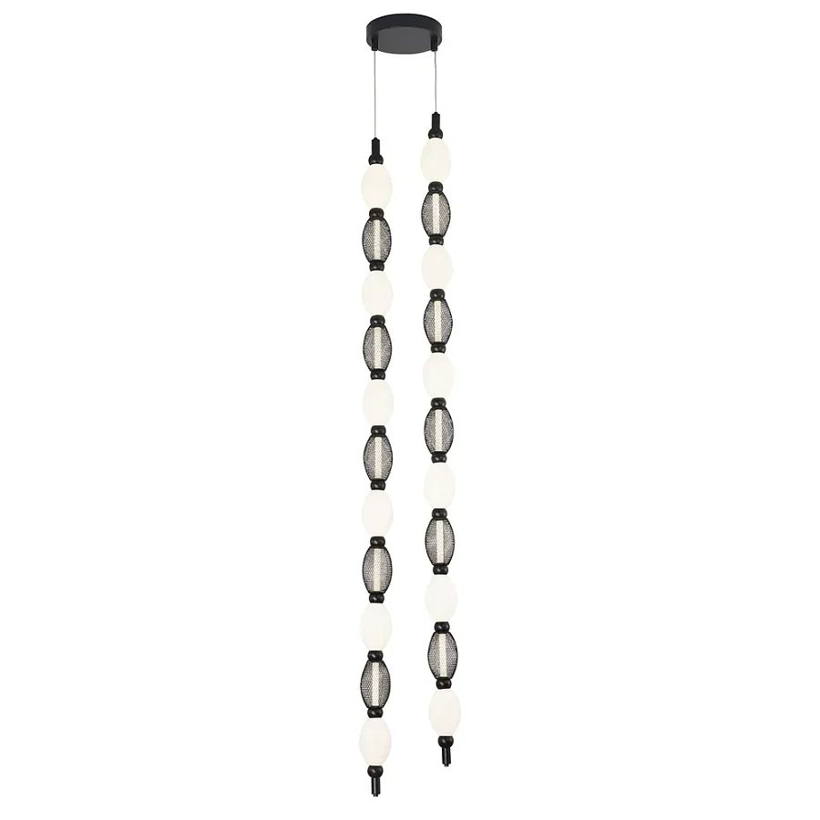 Подвесной светильник светодиодный с белыми сферическими плафонами и декоративными элементами в виде черной сетки HANDLE GRAPE