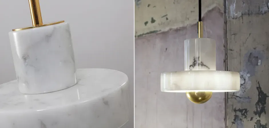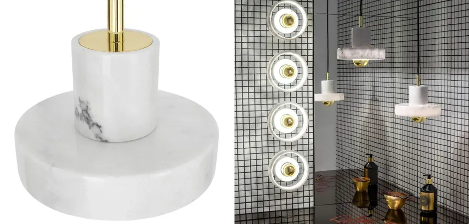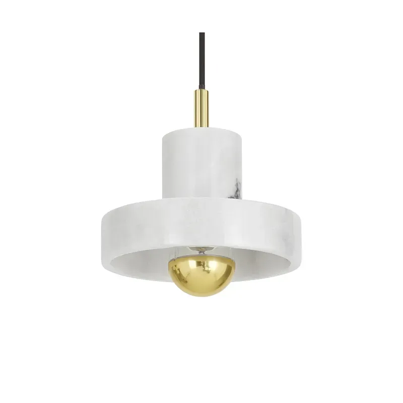 Подвесной светильник с цилиндрическим белым мраморным плафоном и золотистым основанием Tom Dixon