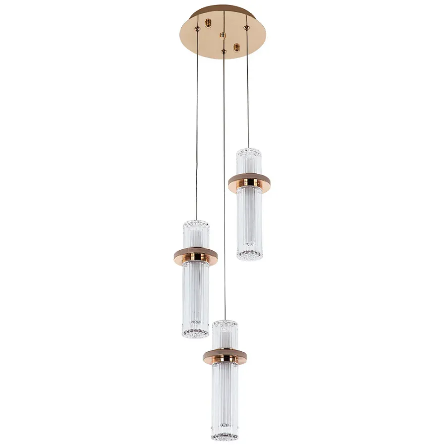 Подвесной светильник Metal Acrylic Tube Trio Gold Hanging Lamp