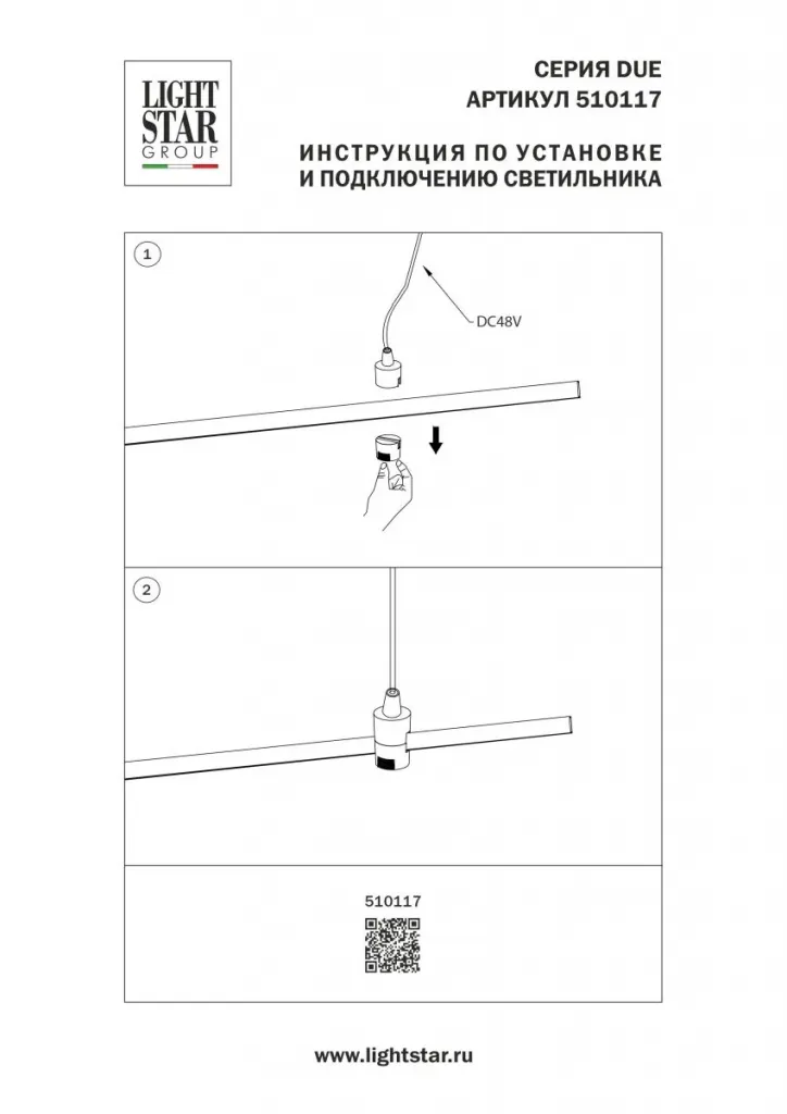 Подвод питания на 48V черный Lightstar Due Hermes 510117