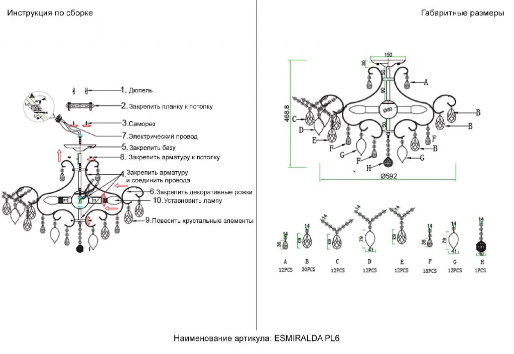 Потолочная люстра Crystal Lux ESMIRALDA PL6 GOLD