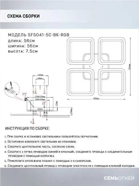 Потолочная люстра Seven Fires Barna SF5041/5C-BK-RGB