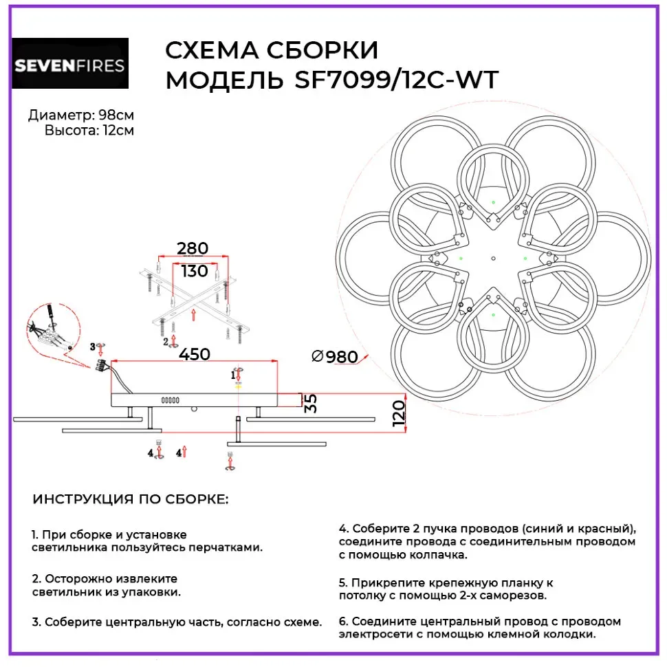 Потолочная люстра Seven Fires Pauli SF7097/6C-WT-RGB