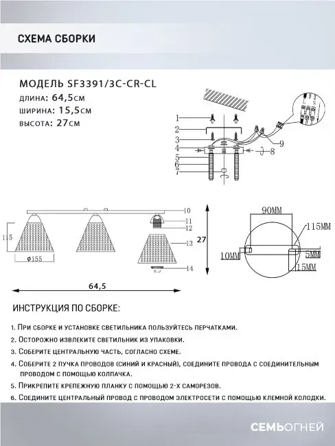 Потолочная люстра Seven Fires Fabius SF3391/3C-CR-CL