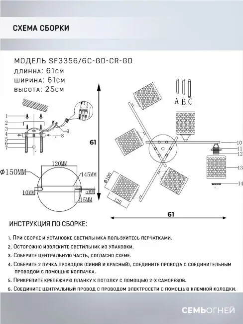 Потолочная люстра Seven Fires Idella SF3356/6C-GD-CR-GD